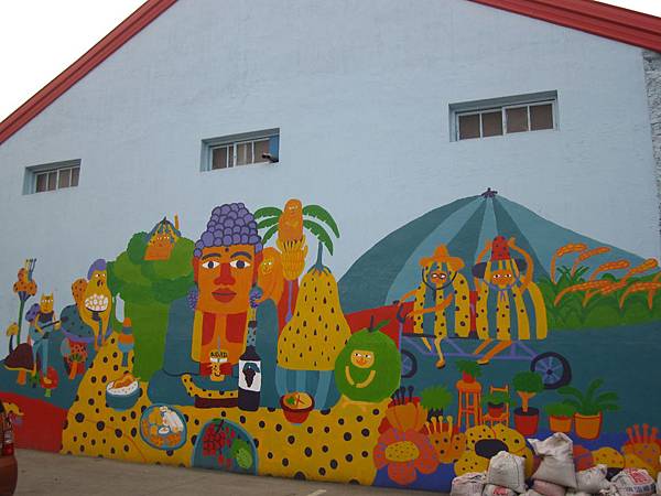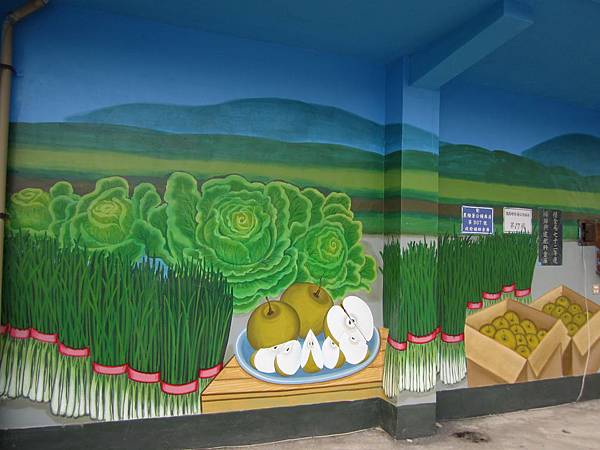 停車場內的牆面彩繪了各式的農產蔬果,使得原本乏味的停車場變得活潑