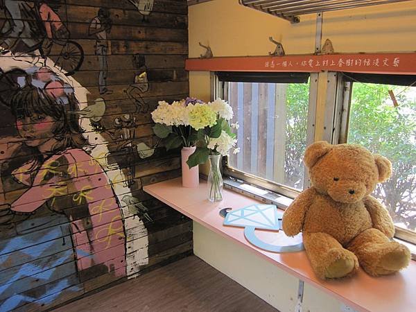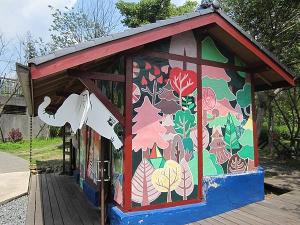 這間小屋子打造出叢林的概念,正面還有象與鹿的立體意象,挺可愛的!