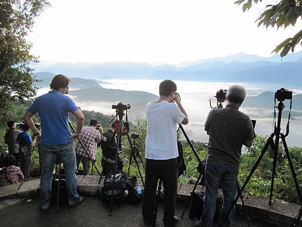 這些大哥們不知道幾點就來卡位了,拍日出必備的腳架跟黑卡都準備好了